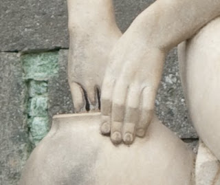 Para que se hagan una idea de cómo fue la prueba y el nulo rigor que podría tener, describo lo realizado. Cerca de una de las estatuas que hay en el jardín, fijé el ajuste a prioridad a la apertura, Elegí una apertura de 5,6 y un ISO de 200, ya que las condiciones de luz no eran demasiado buenas. La longitud focal estuvo en torno a las 110 o 120 mm. En el caso del 18-200 activé la reducción de vibraciones (había que darle todas las ventajas posibles) y usé, en los dos casos, el enfoque automático. Era una prueba rápida, ya dije. Saqué dos fotos con cada uno de los objetivos y fin. Ya podíamos volver a casa. Desde luego, como experimento, adolece de todos los errores que se pueden cometer frente al método científico.