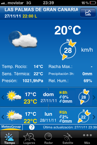 Hace un rato que he llegado de pasar el fin de semana en casa, Las Palmas. Allí salí en camiseta de manga corta. Aquí tuve que calarme la chaqueta y exhalaba humo por la boca.