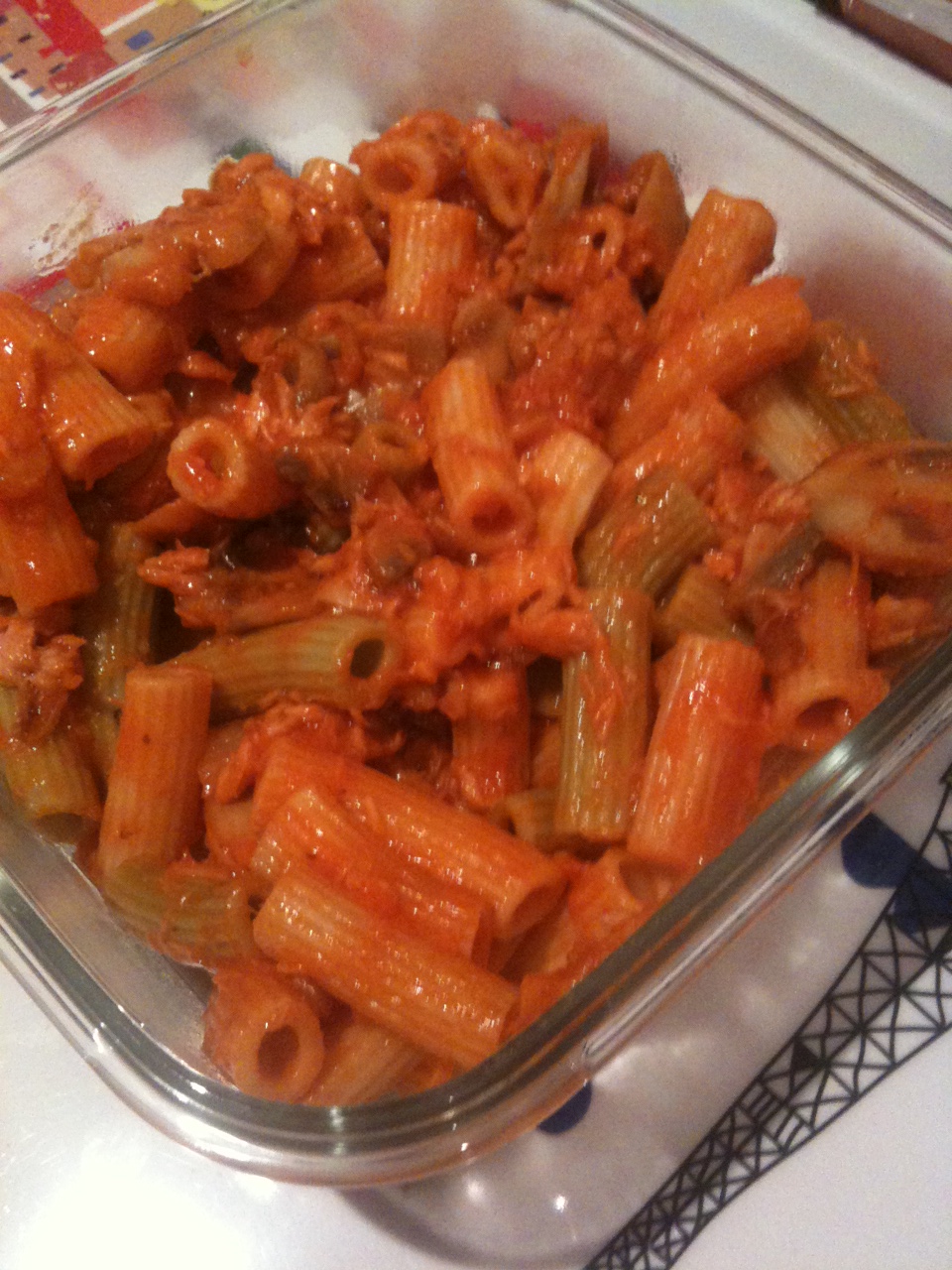 Así que ni corto ni perezo, casi sin restregarme las legañas de los ojos, me metí en la cocina e improvisé unos macarrones con tomate. Mientras se guisaban los macarrones en la fussion —sí, sí, soy un fussionita más—, sofreía unos pocos trocitos de cebolla dulce en una sartén, que una vez ligeramente dorados —alguno salió aún peor parado que eso—, fueron acompañados por unos champiñones en laminas de lata y que, todo ello junto, una vez caliente, fue acompañado de un tetrabrick de tomate frito, ligeramente azucarado para restarle la acidez del fabricante, y que concluyó, una vez caliente todo, con un poco de atún de lata. Todo ello echado sobre los macarrones guisados seis minutos y enfriados bajo agua para que se quedaran al dente y ligeramente espolvoreado con albahaca. La operación no llevó más de diez minutos. Lo que ya no tengo tan claro es si ese mejunje improvisado será comestible o si, al final, tendré que acercarme al restaurante a por el menú de ocho euros.